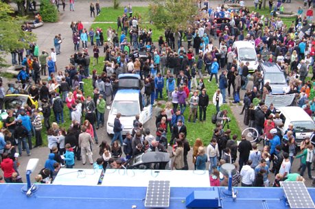 This amount of energy transfer into an in car storage device, is currently only possible with liquid or gaseous fuels like gasoline, diesel, ethanol, LPG, or hydrogen. Liquid fuels contain roughly 10KWh of energy per liter. Given the low energy efficiency of 30-50% of combustion engine driven cars, we can refuel 100km worth of energy by filling up between 3 and 10 liters of diesel, for example. Just for completeness, let’s shortly consider the merit of these: gasoline, diesel and LPG are fossil fuels, on which this article assumes we want to eliminate our dependency. Biodiesel and ethanol have other serious sustainability issues (displacement of food crops) and do not fulfill the total energy balance (climate impact) we want to achieve. That leaves hydrogen: liquid or high pressure hydrogen could fulfill the requirement of the refueling delays. But the total energy balance of hydrogen is very wasteful: The amount of energy needed to produce the hydrogen is much higher than the energy that will be provided by the fuel cell to the wheels of the car. The production of hydrogen is inefficient, the storage and transport fraught with losses (hydrogen even leaks out through the walls of any container it is kept in), and compressing or liquefying hydrogen is a very energy intensive process. Hydrogen would definitely be an ideal energy carrier, if we renewable energy were available in abundance. This could become the case, for example if solar collectors became so cheap and efficient that we could afford to waste half of the solar energy produced on compressing or liquefying the hydrogen and compensating for the storage losses. Since we have no source of renewable energy available that we can afford to handle in such a wasteful way, for the time being, practical options left to consider are exotic solutions like pressurized air, flywheels, supercapacitors or the battery electric car. This article focuses on the latter, due to this being the one technology that can be conceived at the moment to be implementable at the shortest delay in order to remove the dependency on fossil fuels in individual transportation.